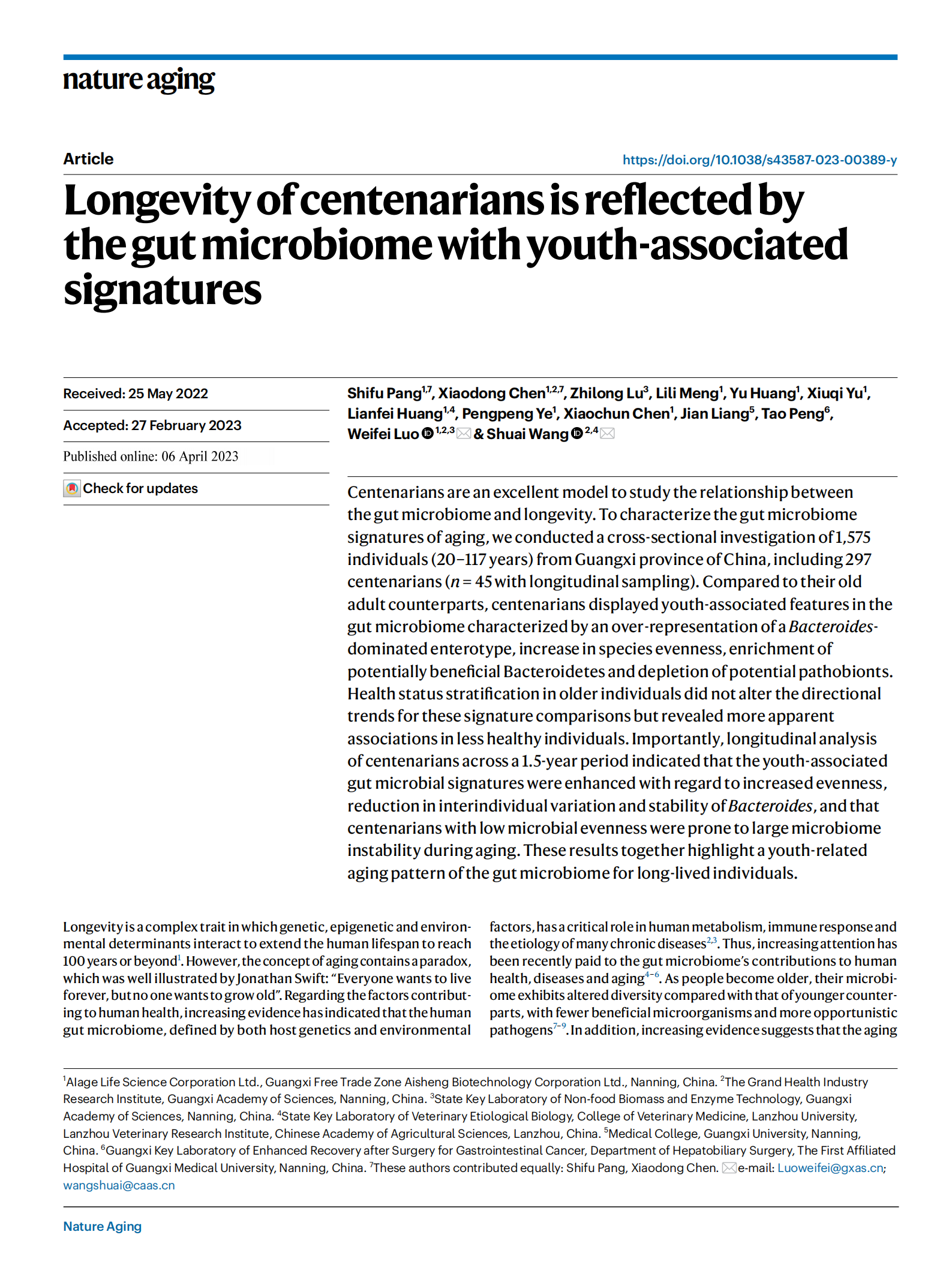 2018年,开展超级长寿人体微生物组计划。
